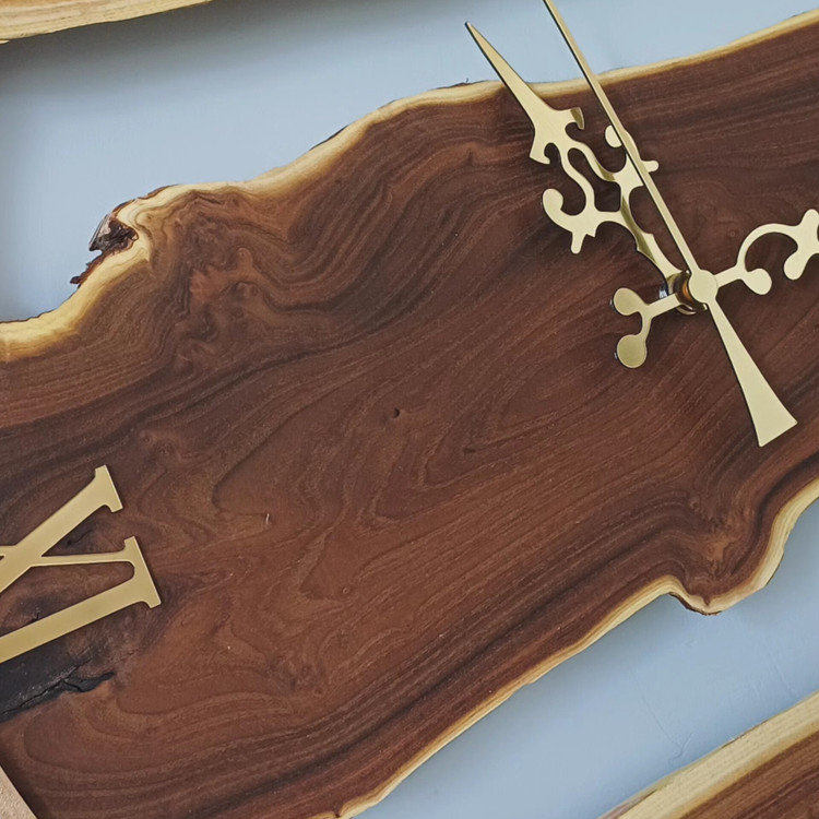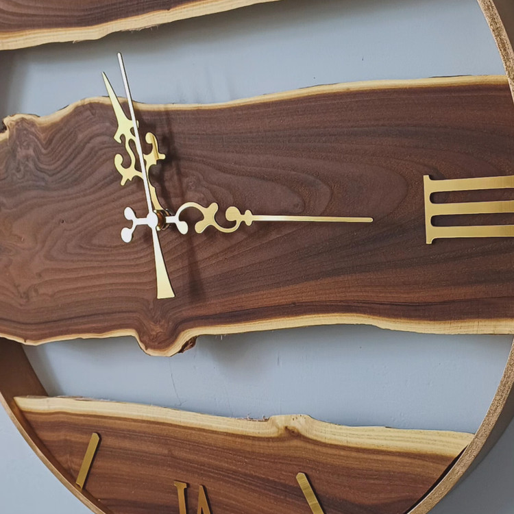 ساعت دیواری چوب سنجد با قاب طلایی، انتخابی خاص برای کسانیست که به دنبال ترکیب هنر طبیعت با طراحی مدرن هستند.